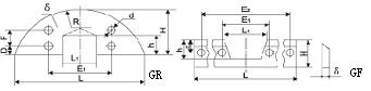 規(guī)格型號(hào) L L1 δ H h R E1 E2 D 孔徑 備 注